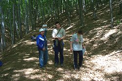 Azonban mindent felülmúlt a "nagy vizsgatúra", melyet 2002.május 3. és 5. között Kisirtáspusztán tartottak. Az odaúton mindenki a jegyzeteit bújta, miközben szédületes sebességgel menekültünk a sztrádán az Alföldrõl. Aztán a vidék kezdett egyre inkább hegyesebbé válni, s nemsokára már a Börzsöny szívében találtuk magunkat. A Toboz kulcsosházhoz kivágott fákkal eltorlaszolt ösvényen jutottunk le (még mindig takarításra vár!), elõdeink által készített lépcsõfokokon járva.
