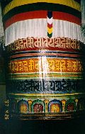 A falu elején lelkes árusok. Karperecek, kések, türkisszel berakott dobozkák, csontból faragott szobrok. Beljebb az egyik kerítésen preparált jak fej és tea törõ mozsár kelleti magát. A repülõtér bejáratánál hosszú imammalom füzér. Az egészet beborító tetõ szépen kifestve. Harsány színekkel jelenítik meg Buddha életének eseményeit. Tibethez közeledve érzõdik az ábrázolás stílusának megváltozása. Rózsi egy rejtett zugban rátalál egy óriás imamamalomra. Embernyi példány. Biztosan nagyon komoly fohász lehet rajta. A kisebbek közül megpörgetek néhányat, ártani biztosan nem árt. Az utolsó ház a rendõrõrs. Már régi ismerõsként üdvözlünk néhány bentlévõt. Egy flótás osztrák, a szlovák házaspár, néhány nagyra nõtt USA-beli fiatal meg egy fel-fel bukkanó angol csapat. Õk is a hágóhoz tartanak. Míg várakozunk, közelebbrõl is megnézem azt az erõsen töredezett kõzetet, melynek hegyes piramisai egyre gyakrabban határozzák meg a környék arculatát. Állagában leginkább a porló dolomitra hasonlít, de persze nem az. A folyók mentén még vagy egy hétig találkozunk vele. |