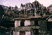 A szokatlanul terjedelmes szántóföldek után beérünk a régi Pisangba. Ha tudnának pénzt rászánni csodálatos mûemlék falu lehetne. Néhol elõvillannak a régi értékek, de már nem nagyon gondozzák õket, A hegy csúcsán lévõ kolostor is elhagyottnak látszik. A falut még lakják, de egyre többen költöznek le innen a forgalmasabb újfaluba. Európában egy ilyen településre idegenforgalmat alapoznak, itt öt-tíz éven belül csak romok lesznek. Ez persze nem a helybéliek hibája. Õk szegények mint a templom egere és ahogy szaporodnak az éhes szájak - gondolom - úgy csökken a porták szépítésére szánt összeg. Ráadásul ide csak a kevésbé lusta turisták jönnek fel. Nincs étterem, nincs szálloda. Csak szép. De ez itt és most kevés lesz a túléléshez.